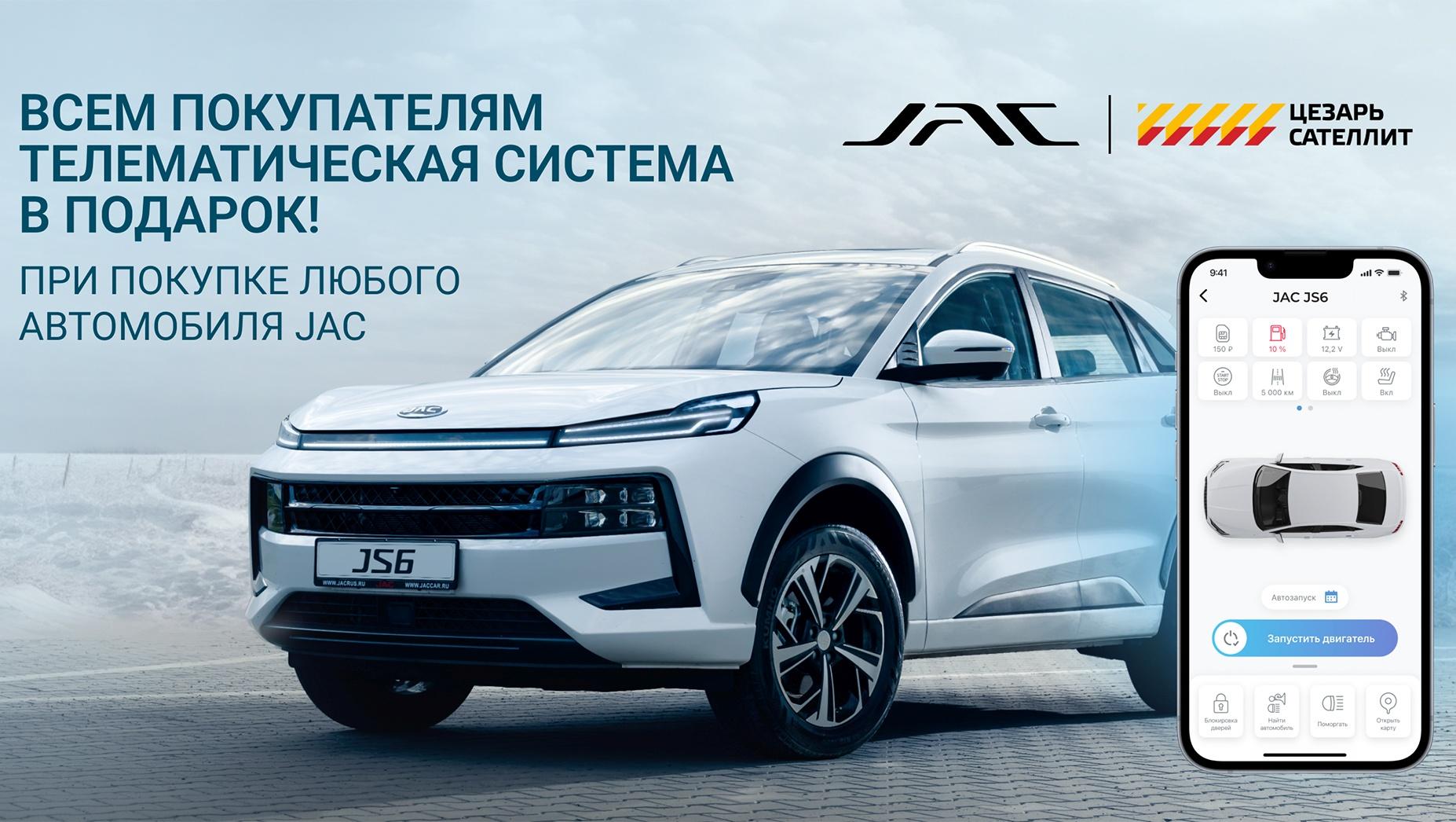С 01 октября 2024 года JAC совместно с Цезарь Сателлит подготовили специальную акцию для всех новых владельцев JAC – предустановленная современная телематическая система JAC ONLINE в подарок*.