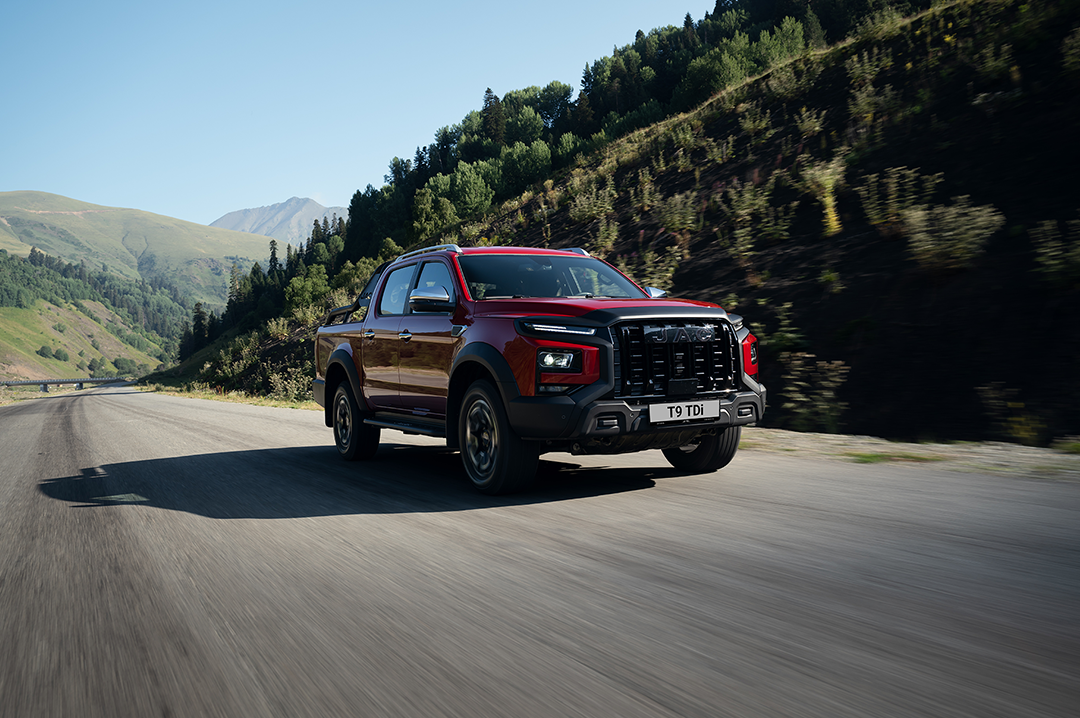 Внешне новый JAC T9 TDi отличается полностью чёрной решёткой радиатора, черным логотипом и внедорожными АТ-шинами.