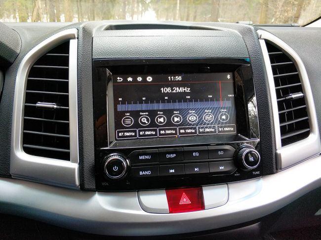 Мультимедийная система с 7-дюймовым сенсорным экраном отличается простым и понятным интерфейсом, имеет функцию Bluetooth, камеру заднего вида и систему TPMS (индикация давления в шинах). Но все меню исключительно на английском языке. Управление основными функциями продублировано кнопками, поэтому найти нужную настройку можно не отвлекаясь от вождения. Компоновка блока климат-контроля также привычна, однако дисплей маловат, а его синий фон в сочетании с блеклыми цифрами слишком яркий.